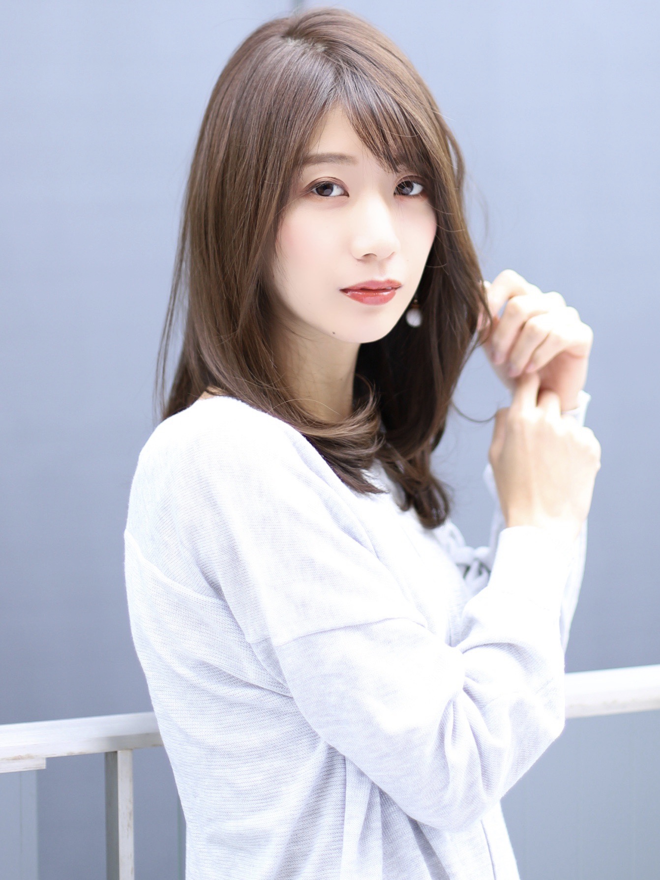 艶感たっぷりのストレートで毛先もナチュラルな仕上がりに。ナチュラルベージュで透明感もプラス。